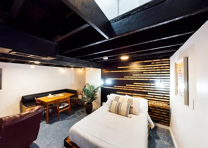 Chi-Town Hideout #B - Near Metra apartment provides guests with an adjoining terrace, as well as such modern comforts as air conditioning. Wi-Fi and a television make up the in-room media amenities. This accommodation is equipped with a bathroom that features hairdryers and bath sheets.